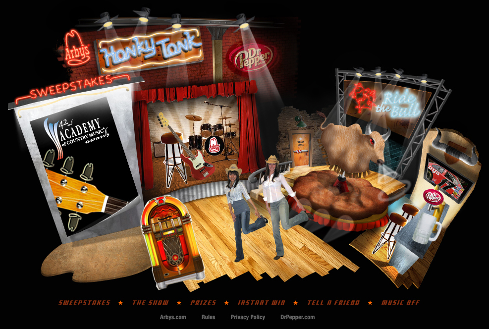 Step into the Arby’s Honky Tonk and try your hand at the mechanical bull, or go backstage for a chance to win a trip to the Academy of Country Music Awards show.